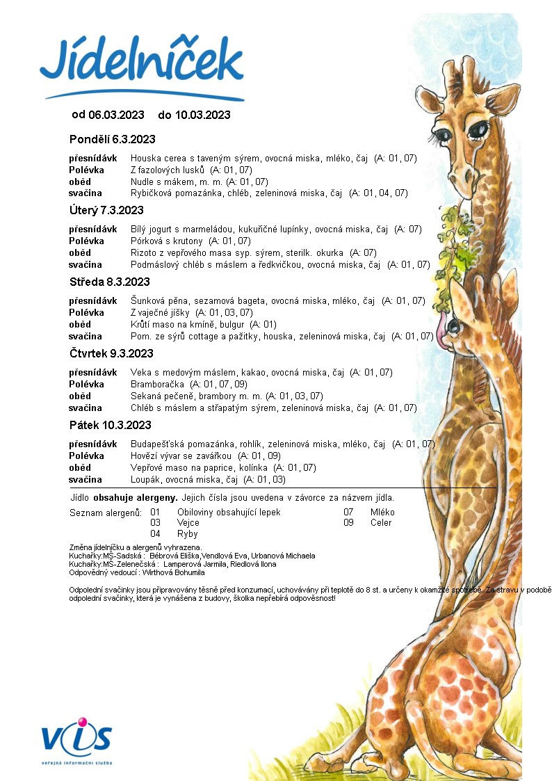 Jídelníček 06. 03. - 10. 03. 2023
