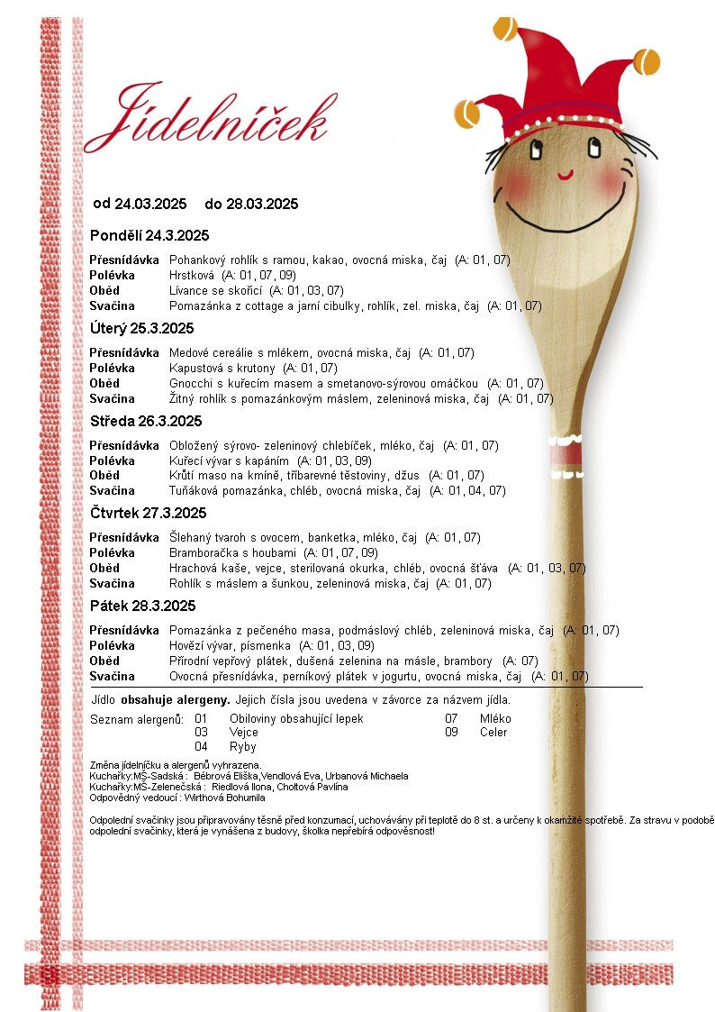 Jídelníček od 24. 03. 2025 - do 28. 03 2025